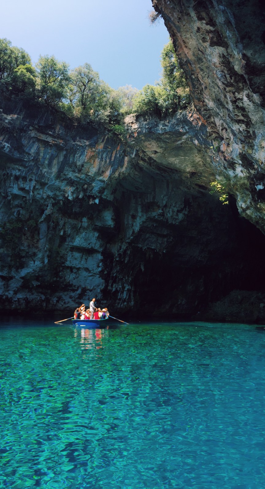 Un lucru dragut despre Kefalonia este ca poti sa te distrezi de minune si sa ai o vacanta frumoasa chiar daca nu esti adeptul statului la soare. Poti merge la pestera Melissani, de exemplu, care e o grota sub pamant creata in mod natural, cu un lac cristalin pe care il poti parcurge cu barca. Iti recomand sa mergi acolo in jurul orei pranzului, pentru ca in felul acesta te poti bucura de un spectacol complet al soarelui si al apei, cu soarele luminand chiar prin golul grotei. Daca esti acolo, poti merge si la pestera Drogarati, foarte aproape.
