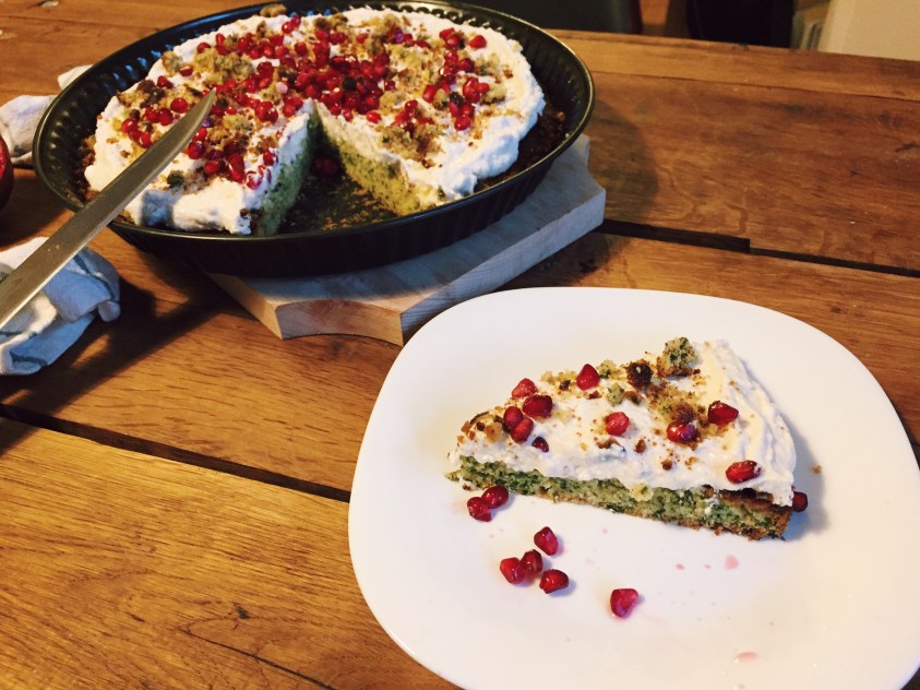 The cake is delicious, that’s for sure. I’d say it doesn’t even taste like spinach, but the reason I say that for is because we usually assimilate spinach with a salty dish. In that case, it’s true, you can’t taste any salty spinach dish – it’s a cake, for god’s sake, of course it’s not salty! But I can’t affirm you don’t taste any spinach – there has to be at least some taste of it. I actually think the spinach is one of the ingredients that borrows the flavors of the other ingredients it’s cooked with – if you eat fresh plain spinach you’ll hardly taste anything.