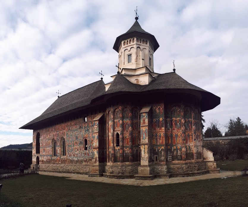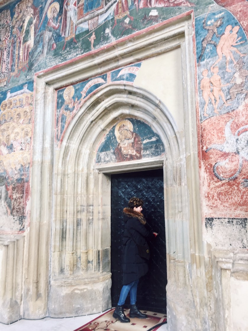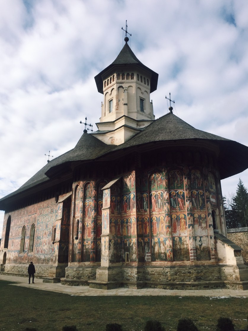On the New Year’s eve we took a road trip around Bucovina. We visited some monasteries – Voroneț, Sucevița, Moldovița and Putna -, we hiked up the hills, we soaked in salty water at a spa. On the New Year’s night, we built a camp fire near our cabin and we enjoyed celebrating in nature, surrounded by hills. We drank homemade wine, we cooked in the cauldron and we also took a short day-trip to Ukraine (such a neutral experience that I wouldn’t bother to narrate it). The nature, the history and traditions impressed us, and we plan returning during the summer, on two wheels this time.