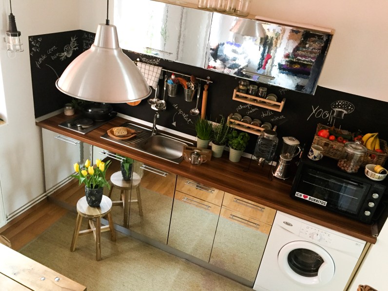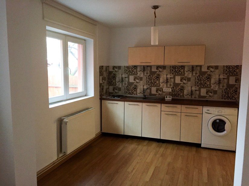 Un mobilier basic, un tapet mediocru, culori fără personalitate, și așa mai departe. Nu mi-a plăcut deloc, mai pe scurt. Nu am fost prea încântată nici de lipsa cuptorului și de cele doar două ochiuri ale aragazului. Știam că nu o să locuim aici o veșnicie, dar chiar și pentru 2-3 ani, eu m-am gândit că merită să facem locul să arate așa cum ne dorim. Și mai ales bucătăria, unde îmi petrec destul de mult timp.