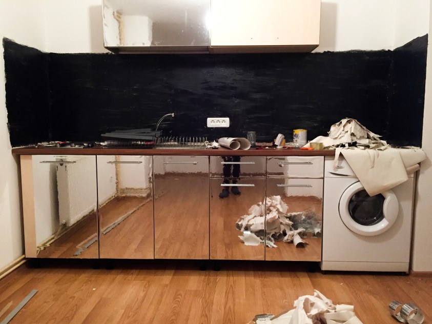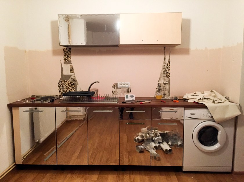 EN: Basic furniture, an ordinary wallpaper, colors that lack personality and so on. I didn’t like it at all, to be honest. I wasn’t very happy about the missing oven or the small stove either. We knew we weren’t going to live here forever, but I think turning the place into something beautiful and enjoyable is worth it, even if we’re going to use it for only 2 or 3 years. And especially the kitchen, where I spend a lot of time.