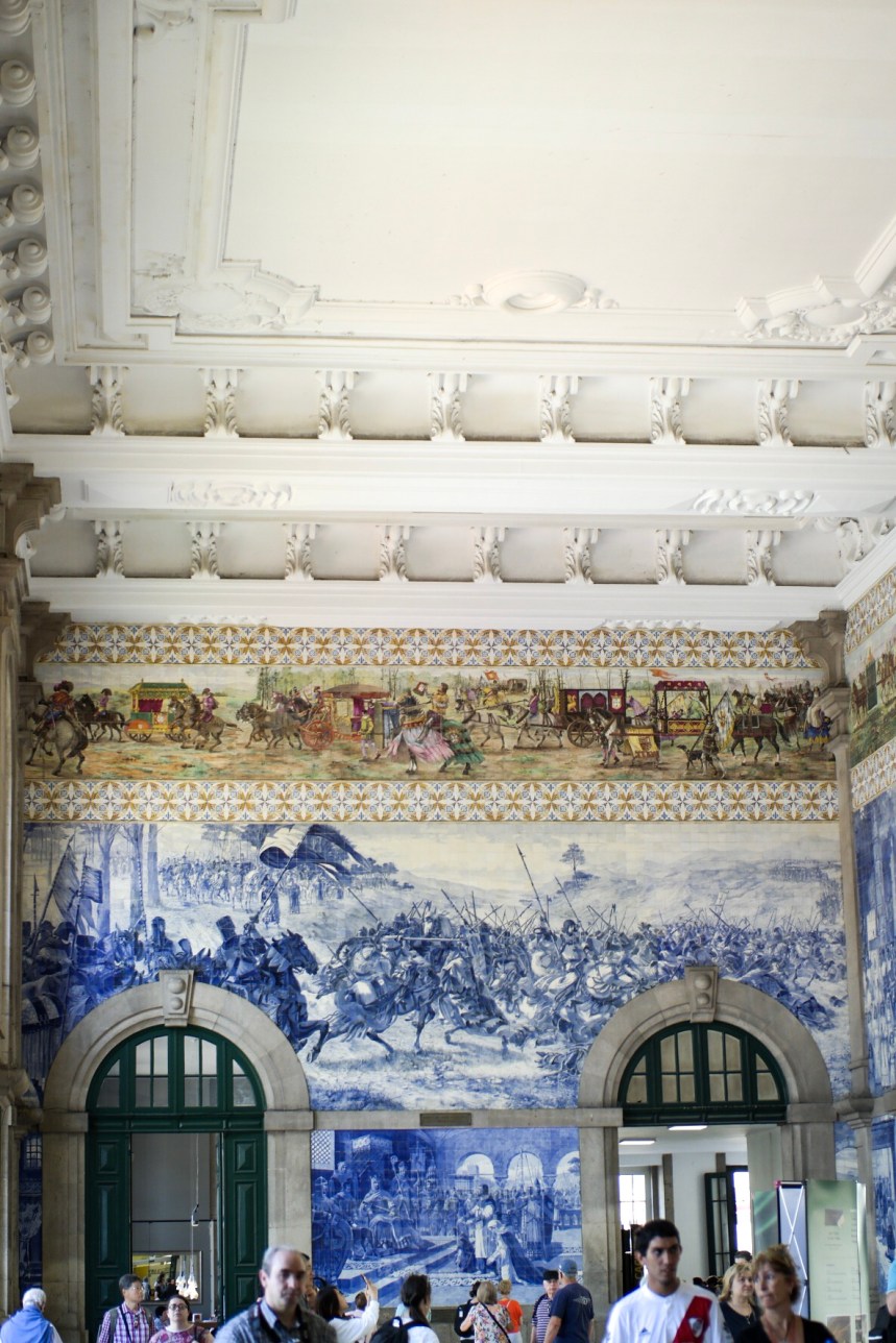 Azulejos – Sau plăcile de ceramică de Porto, cu care sunt decorate o mulțime de clădiri din toată Portugalia. Aceste plăci își au originile în perioada dominației maure, dar au evoluat în timp, până în momentul în care au fost considerate un element tradițional portughez. Cele mai multe clădiri care se bucurau în trecut de această decorație erau bisericile (azulejos pictate manual), dar și locuințele celor înstăriți. Ulterior, după cutremurul din 1755 care a distrus o mare parte a Lisabonei, stilul arhitectural Pombaline, introdus de Sebastião José de Carvalho e Melo (primul marchiz de Pombal), a favorizat utilizarea plăcilor de ceramică. Atunci au luat naștere, practic, o mare parte din clădirile placate cu azulejos care împânzesc tot Porto-ul și Portugalia. Totuși, pereții cu azulejos pictate manual, cei mai vechi adică, rămân cei mai frumoși pereți pe care i-am văzut vreodată, pentru că fiecare dintre ei spune o poveste (de obicei o poveste a vieții cotidiene, a istoriei sau culturii portugheze), și au fost lucrați cu atâta grijă! Nu numai că fiecare placă era pictată manual timp de câțiva ani buni, dar apoi erau luate bucată cu bucată și puse pe peretele simplu. Cred că e în plus să mai zic că am făcut peste 100 de poze cu pereții ăștia, din mai multe unghiri, la mai multe ore… da, e în plus!