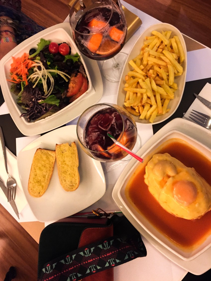 Francesinha at Cafe Luso – Firstly, Francesinha means “little french girl” in Portuguese, and it’s what they call the largest sandwich you’ll ever eat and which will earn you 2000 calories. The tastiest and most flavored 2000 calories I’ve ever eaten. It contains steak meat, burger meat, sausages, bacon and mortadella, it’s covered with cheese and egg and it floats in a 20-ingredient sauce (beer and whiskey being two of them). Please ignore the salad in the picture; my friend is vegan so she has to skip all this culinary roller coaster. Anyway, I ate this menu two times (which is 4000 calories), and I recommend you do that as well.