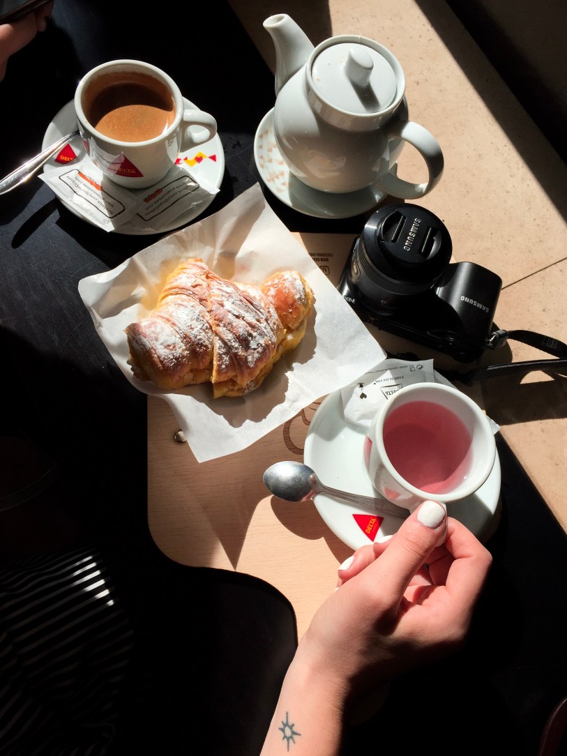 EN: Breakfast at Celeste – Every morning I bought a delicious croissant and a tea for 1 euro and 40 cents, which is ridiculously cheap. They also sell a lot of traditional Portuguese sweets, like Pastel de Nata, but salty treats as well. Usually there’s a queue in the morning, and sometimes you don’t find a free table, but I would still go there for breakfast next time I go to Porto.