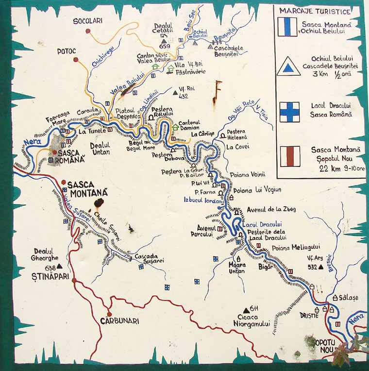 Există foarte multe obiective de vizitat pe parcursul cheilor râului Nera, unele implicând o oră sau două de drumeție, dar pentru altele fiind nevoie chiar și de 10 ore de mers prin pădure, prin apă sau prin tuneluri săpate în stâncă. Am atașat mai jos o hartă completă a traseelor, iar lista cu locurile cele mai populare și frumoase (subiectivă fiind) de pe chei este următoarea: