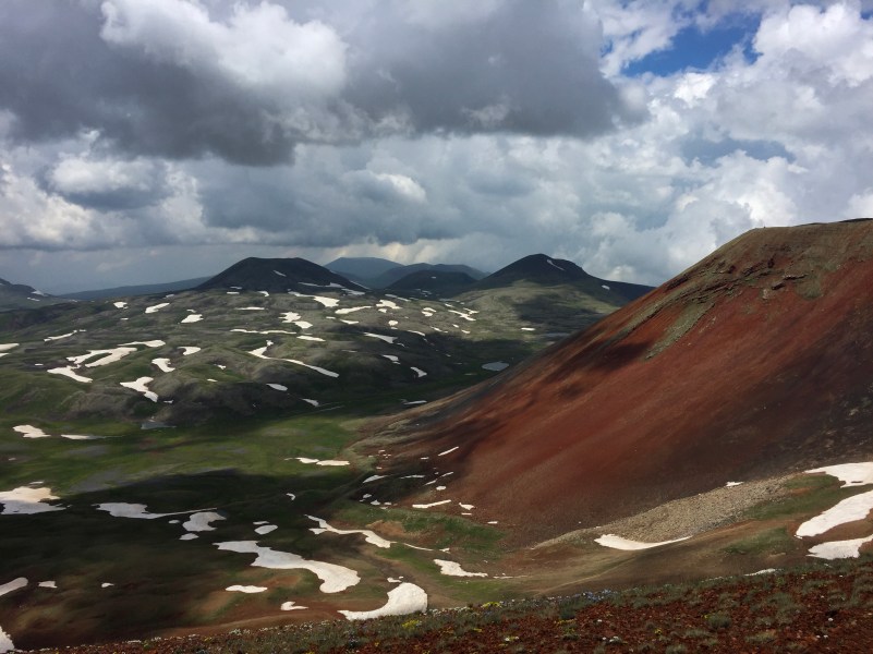 Dar muntele Aragats, in schimb, e o bijuterie. Este cel mai înalt munte din Armenia, cel mai înalt dintre cele 4 vârfuri avănd 4090 de metri. Noi am ales să mergem pe vărful sudic, dar nu am urcat până sus, pentru că ajunsesem după masp și nu mai aveam destul timp  încât să ne și întoarcem (și de cărat cortul și toate chestiile nu prea mai aveam chef). Ne-am mulțumit cu o noapte în cort la 3500 de metri (cam până unde poți ajunge cu mașina), și priveliștea din pozele de mai jos.