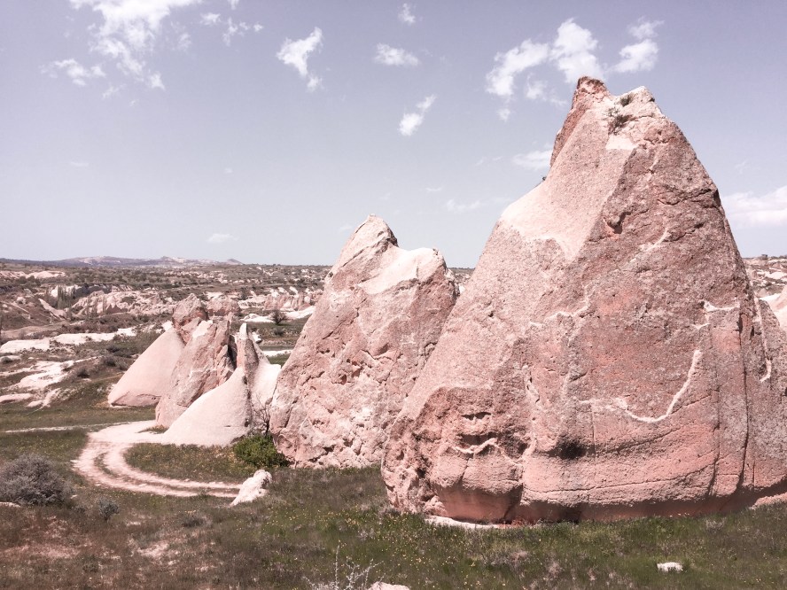 În fine; cert este că am ajuns, într-un final, acolo. Și cât mă bucur! Cappadocia este un loc magic care, am aflat ulterior, are atâtea de oferit în afară de bine-cunoscutele răsărituri acompaniate de mii de baloane cu aer cald. Am avut norocul (cum îl numesc acum; atunci îl credeam ghinion) să petrecem primele 4 zile ale vizitei noastre acolo sub semnul unor condiții meteo absolut superbe, dar nu îndeajuns de bune pentru zborurile cu balonul (nu cred că am menționat, am fost în luna mai). Cappadocia este cel mai bun loc din lume pentru activitatea asta, datorită reliefului (o depresiune care ferește zona de curenți de aer), dar și a latitudinii (cred că plouă foarte puține zile pe an), dar, cu toate astea, vremea în acea perioadă a fost foarte imprevizibilă, la fel ca și în restul lumii, mai nou.
