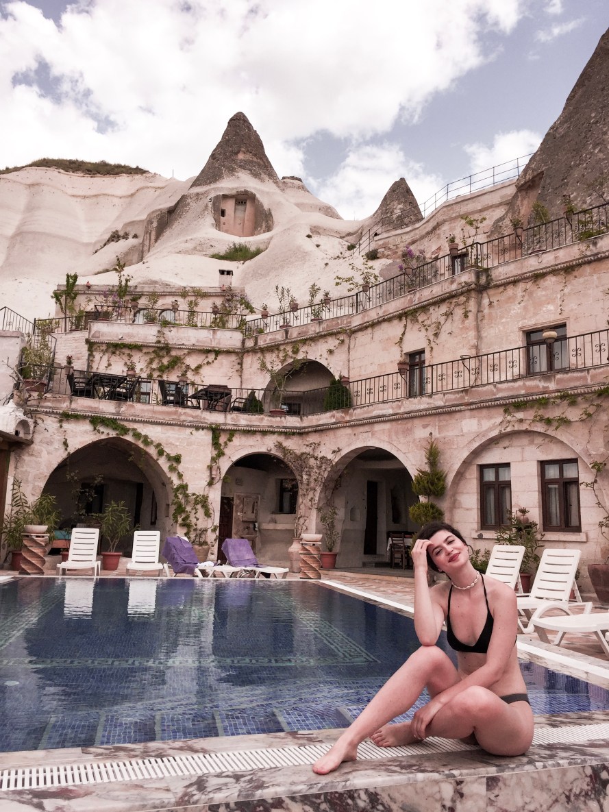 Am avut, așadar, 4 zile în care ne-am plimbat prin Goreme, unde am și locuit (un orășel absolut delicios, cu distanțe parcurgabile – is that even a word?! – în mai puțin de jumătate de oră), am hike-uit prin diverse zone stâncoase (Rose Valley, Red Valley), am făcut o tură cu un jeep închiriat prin alte zone stâncoase (Pigeon Valley, Pasabag, Uchisar etc), am fost la o ceremonie extraordinară și lifechanging (pe bune) a unor Dervish-i (must!!), am mâncat mâncare mega-mega bună (la Inci Cave și Cappadocian Cuisine), am făcut plajă la celebra piscină a hotelului Local Cave House, am fost la primul meu hamam (de neuitat experiență), am făcut foarte foarte FOARTE multe poze, ne-am speriat de câinii foarte pașnici ai zonei, am descoperit supermarket-ul doar în ultima zi (până atunci făcându-ne cumpărăturile de la, probabil, cea mai scumpă alimentară) și, mă rog, multe alte chestii din astea de fete.